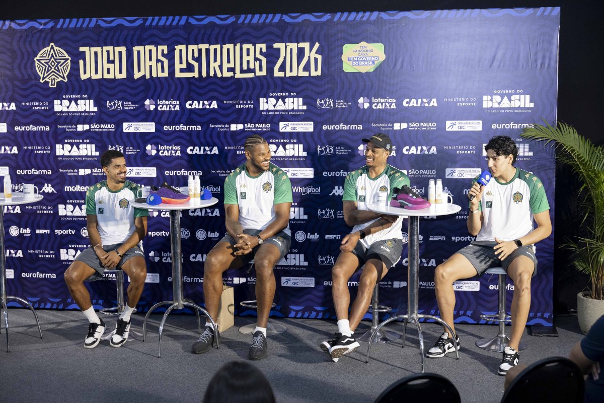 Capitães do Jogo das Estrelas 2026 durante o Café nesta sexta-feira no Ibirapuera. Foto: Marcos Limonti / RELANCE